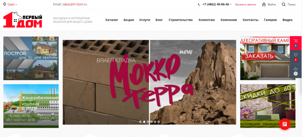 Отсутствовал отдельный раздел с каталогом, меню с небольшим количеством товаров было неприметным и располагалось слева. Сайт на тот момент около 1,5 лет находился на стадии заполнения.